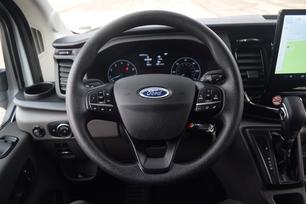 This transit with the 3.7 L engine drives great with plenty of power for driving the hills and mountains of east tennessee. It handles curves and street driving ok as well. I am averaging 16.6 mpg. The only performance problem I have encountered is some rather strong buffeting behind a semi at highway speed. When I backed off about 75 feet the buffeting was only slight. The front seats aren't the best with just fabric covering and rather poor small arm rests. But they are reasonable comfortable. The rear 13 seats, small, cramped, etc are fit for only short trips of 30 minutes or less. At 6ft 3in tall I am unable to stretch my legs out completely which makes driving long times a bit difficult. The overhead interior is starting to pull away from the walls of the vehicle leaving small 1/4-1/2 inch gaps. Finally, getting in the van is awkward, both for me and my 5ft 7in tall wife. If I go straight for the seat it's a bit high and I have to slide onto the seat. If I first step onto the interior step, I then am too high and may bump my head. She has to pull herself in using the handle on the passenger side.… - 5.0