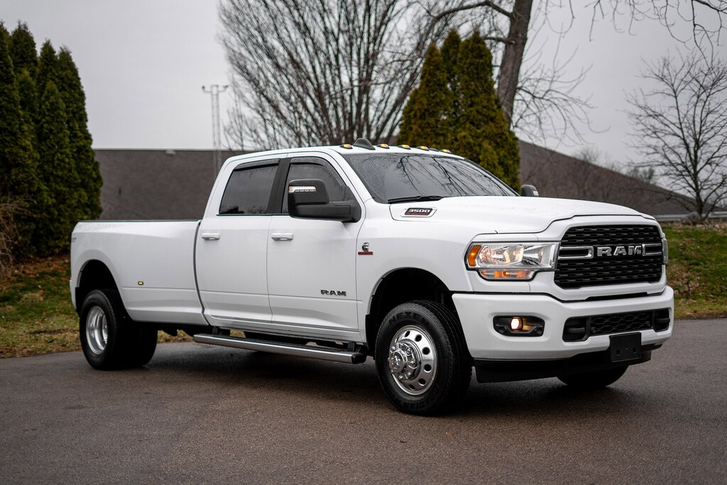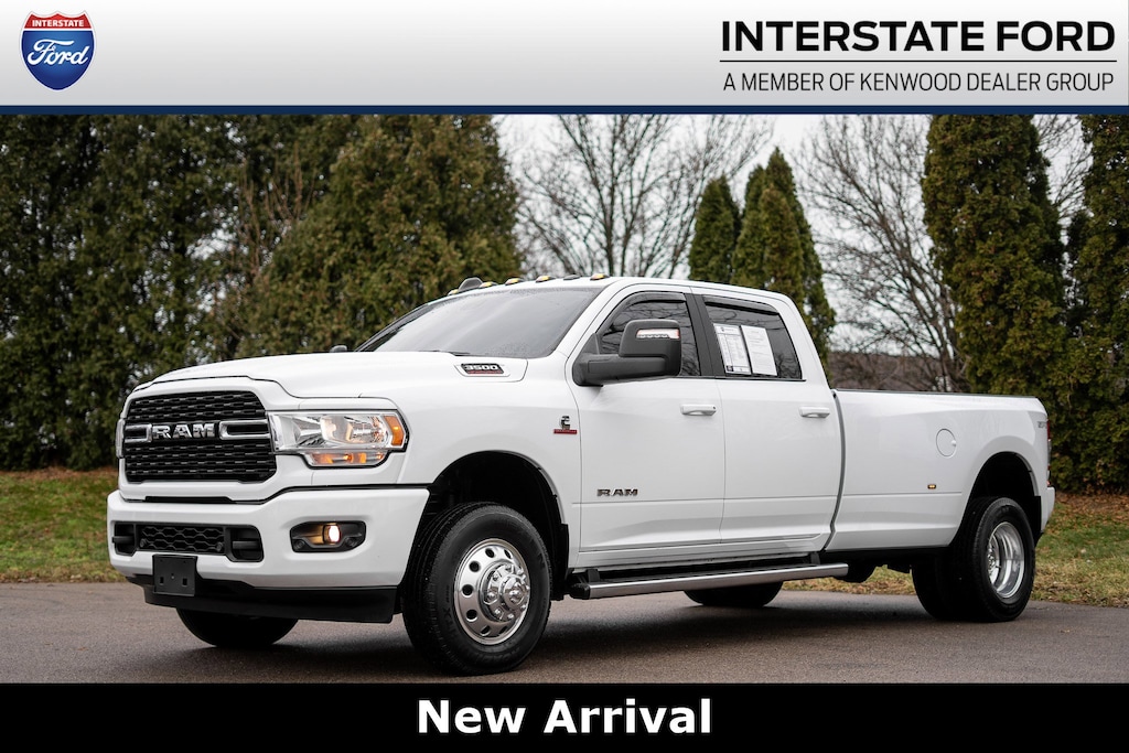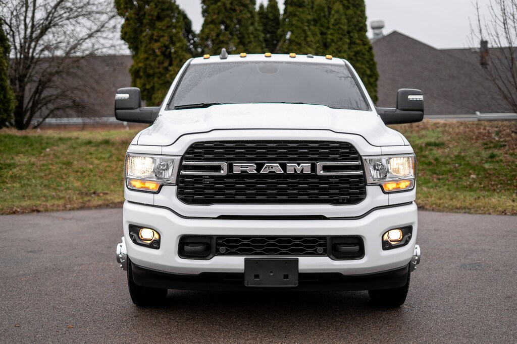 No Accident History, Non-Smoker, Full Balance Of Factory Warranty, Local Trade, 2 Way Rear Headrest Seat, 2nd Row In Floor Storage Bins, 4 Way Front Headrests, 40/20/40 Split Bench Seat, 4G LTE Wi-Fi Hot Spot, 6000# Front Axle w/Hub Ext, 8.4" Touchscreen Display, 9 Alpine Speakers w/Subwoofer, All R1 Low Radios, All Radio Equipped Vehicles, Apple CarPlay, Auto Power-Folding Mirrors, Black Exterior Mirrors, Black Interior Accents, Bluetooth Handsfree Phone & Audio, Body Color Door Handles, Body Color Grille Surround, Box & Rear Fender Clearance Lamps, Center Hub, Clearance Lamps, Cold Weather Group, Connectivity - US/Canada, Dual Glove Boxes, Dual Rear Wheels, Engine Block Heater, Exterior Mirrors Courtesy Lamps, Exterior Mirrors w/Heating Element, Exterior Mirrors w/Supplemental Signals, Foam Bottle Insert (Door Trim Panel), Footwell Courtesy Lamp, For Details Visit DriveUconnect.com, For More Info, Call 800-643-2112, Forward & Reverse Utility Lights, Front Armrest w/Cupholders, Front Center Seat Cushion Storage, Front Fog Lamps, Front Seat Back Map Pockets, Global Telematics Box Module (TBM), Glove Box Lamp, Google Android Auto, GPS Antenna Input, Heated Front Seats, Heated Seats & Wheel Group, Heated Steering Wheel, Integrated Center Stack Radio, Integrated Voice Command w/Bluetooth, Leather Wrapped Steering Wheel, Level 1 Equipment Group, Locking Lower Glove Box, Manual Adjust 4-Way Front Passenger Seat, Mirror Running Lights, MOPAR Winter Front Grille Cover, Painted Front Bumper, Painted Rear Bumper, Power Adjust 8-Way Driver Seat, Power Adjust Mirrors, Power Heated Fold Telescopic Mirrors, Power Telescoping Mirrors, Power-Adjustable Convex Aux Mirrors, Premium Cloth 40/20/40 Bench Seat, Protection Group, Quick Order Package 2HZ Big Horn, Radio: Uconnect 5 w/8.4" Display, Rear 60/40 Folding Seat, Rear Dome w/On/Off Switch Lamp, Rear Wheelhouse Liners, Remote USB Port - Charge Only, Selectable Tire Fill Alert, SiriusXM Radio Service, SiriusXM Satellite Radio, Sport Appearance Package, Sport Decal, Steering Wheel Mounted Audio Controls, Storage Tray, Wheels: 18" x 8.0" Polished Aluminum.